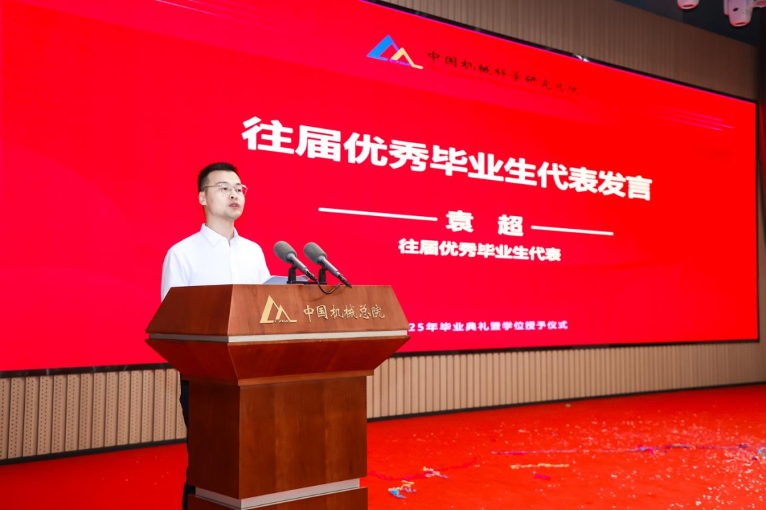 往屆優(yōu)秀畢業(yè)生代表袁超分享留院工作以來(lái)的科研經(jīng)歷與成長(zhǎng),鼓勵(lì)學(xué)弟學(xué)妹們“以‘敢為人先’為刃,在工業(yè)母機(jī)、工業(yè)軟件的賽道上破浪前行;以‘開(kāi)拓創(chuàng)新’為炬,為中國(guó)制造業(yè)的高質(zhì)量發(fā)展點(diǎn)燃燎原星火。”