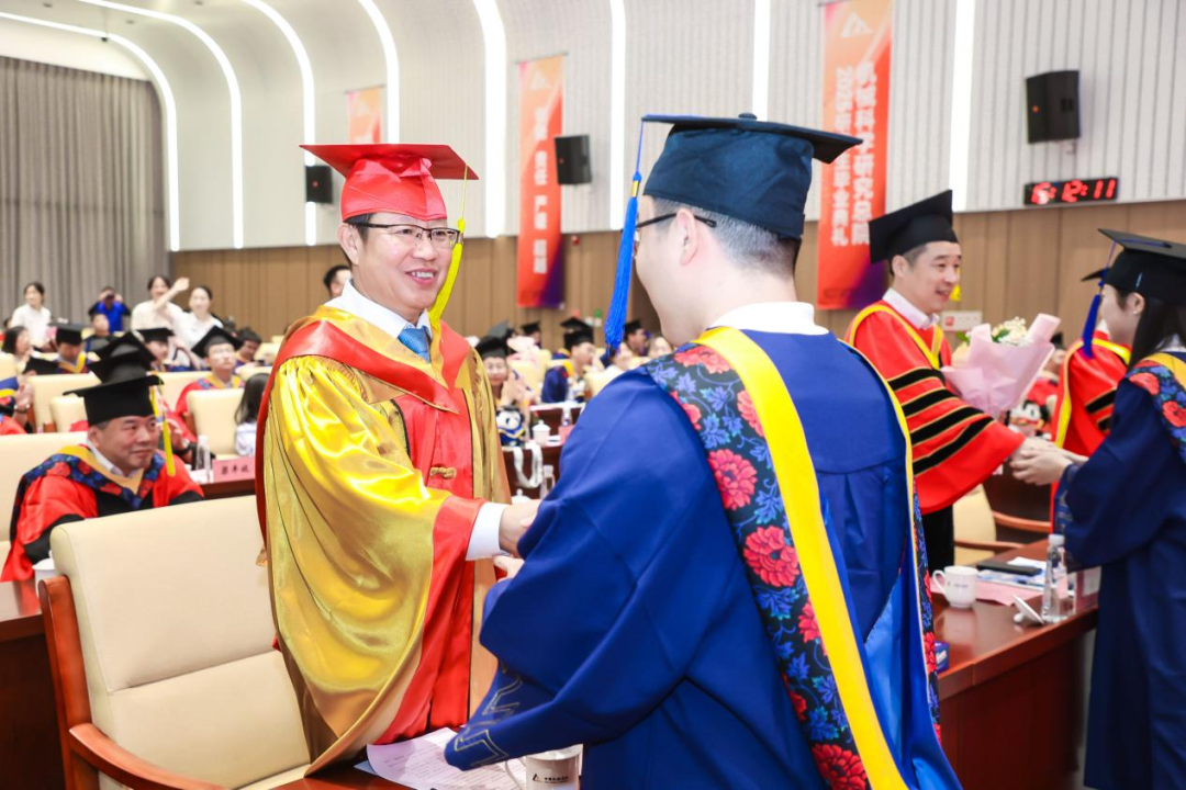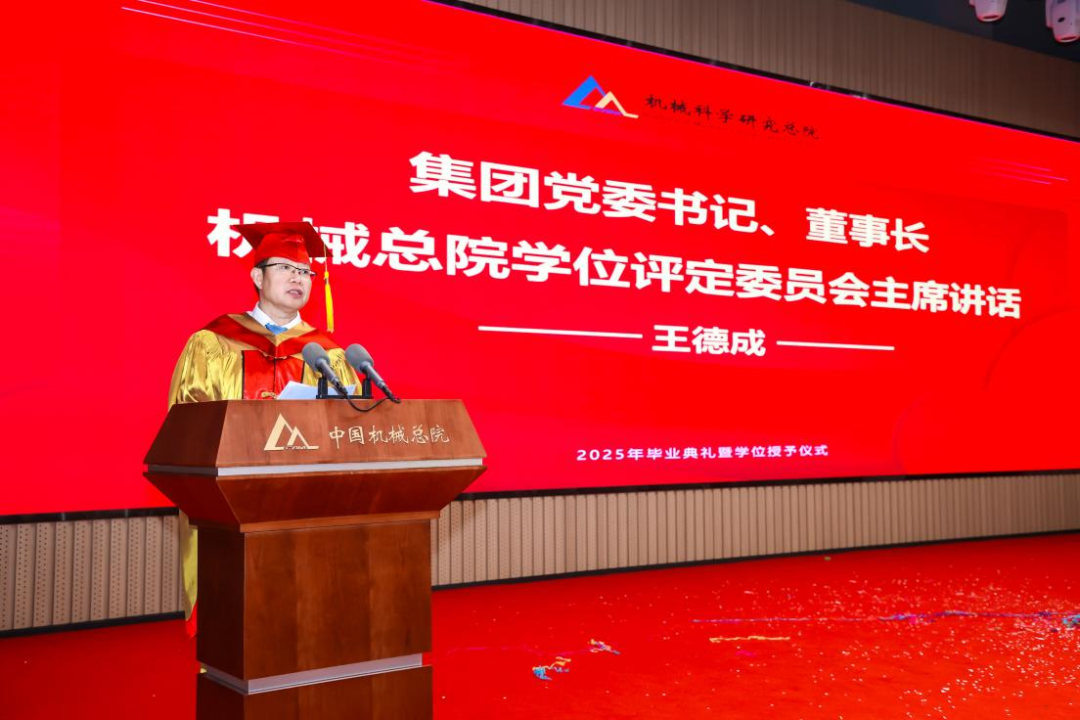 李愛(ài)國(guó)宣讀了《機(jī)械科學(xué)研究總院2025屆畢業(yè)生學(xué)位授予決定》,王德成為每位畢業(yè)生撥穗正冠并頒發(fā)學(xué)位證書(shū)。