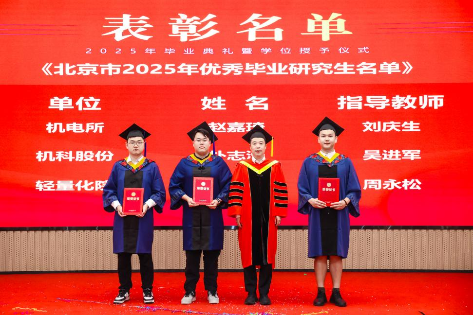 研究生院傾力打造的智慧課程虛擬AI助教“科小研同學(xué)”作為典禮第二主持人登上舞臺(tái),現(xiàn)場(chǎng)宣讀了2025年北京市優(yōu)秀畢業(yè)研究生、機(jī)械總院優(yōu)秀畢業(yè)研究生、優(yōu)秀學(xué)位論文、科技創(chuàng)新成果獎(jiǎng)獲得者名單,孟祥宇、李玉鑫、王宇、姜超分別向獲獎(jiǎng)同學(xué)們頒發(fā)榮譽(yù)證書(shū)。
