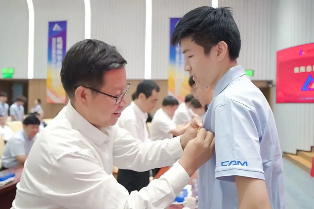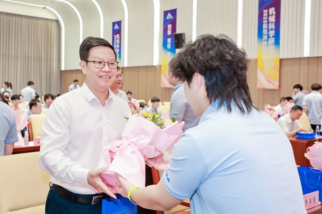 典禮上,王德成、李玉鑫及導師代表共同為新生佩戴總院徽章。這枚徽章不僅象征著中國機械總院人的身份,更承載著“以提升中國裝備制造水平為己任”的使命與榮光。優(yōu)秀導師獎、最受歡迎教師獎、新生入學獎學金和優(yōu)秀課程獎獲獎代表上臺領獎。新生代表手捧鮮花向?qū)焸儷I上誠摯敬意與節(jié)日祝福,表達莘莘學子的感激之情。